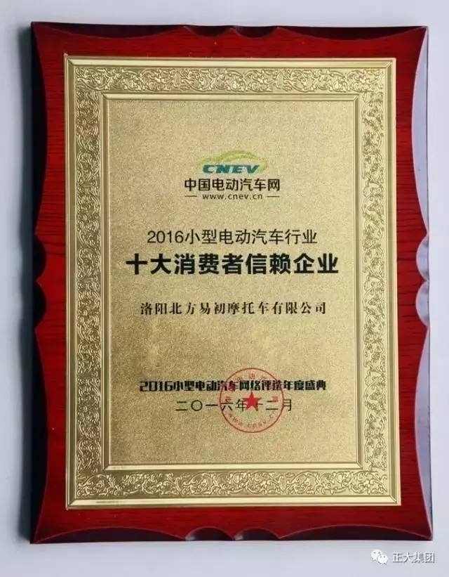 ▲洛陽北易榮獲2016小型電動汽車行業(yè)“十大消費(fèi)者信賴企業(yè)”