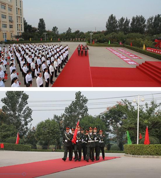 早上八時(shí)零八分,升旗儀式正式開始,在雄壯的軍樂(lè)聲中,颯爽英姿的護(hù)旗手邁著整齊的步伐護(hù)送國(guó)旗走向升旗臺(tái)。雄壯的《義勇軍進(jìn)行曲》響起,鮮艷的五星紅旗冉冉升起,迎風(fēng)飄揚(yáng),全體員工手持鮮艷的五星紅旗行注目禮,共同高唱國(guó)歌,表達(dá)對(duì)新中國(guó)的崇敬和熱愛(ài)。